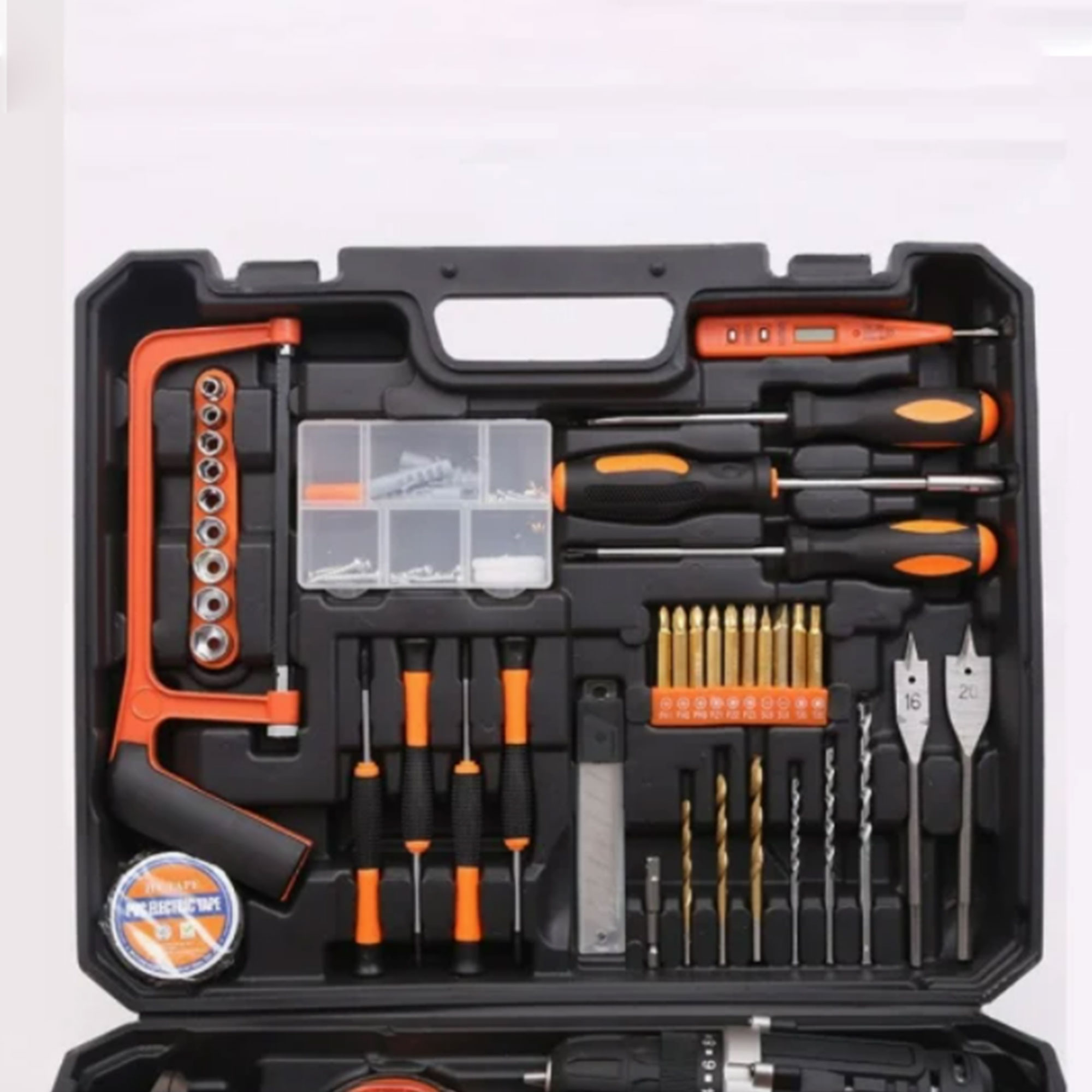 تحتوي على 108 قطعة، وكل الأدوات الأساسية موجودة.